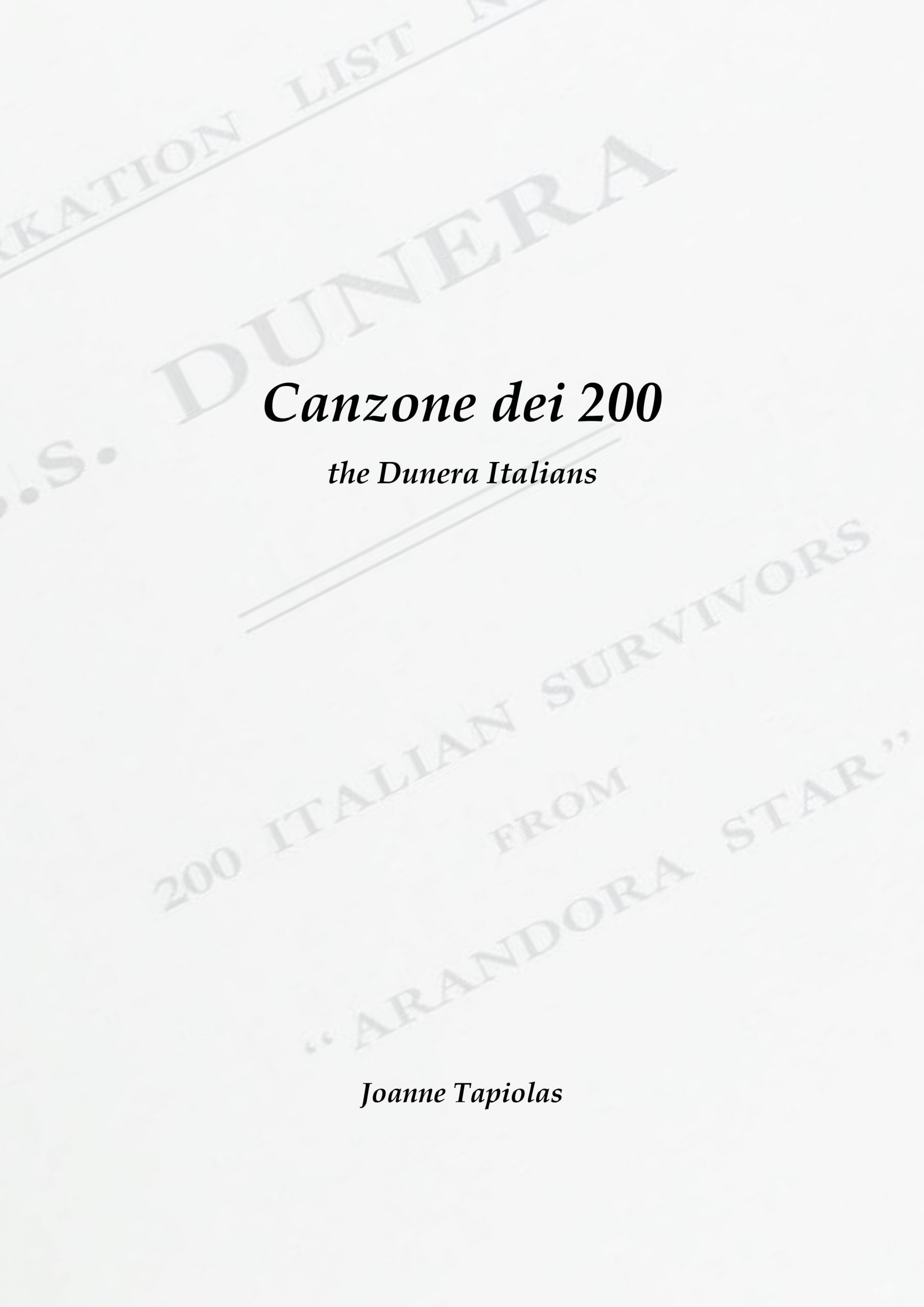 Auf die Arbeit von Joanne Tapiolas „200 Men 200 Stories“ auf ihrer Website „The Dunera Italians“ wurde auf dunera.de bereits hingewiesen. Dort beschäftigt sie sich ausführlich mit den italienischen Männern, die im Juni 1940 als „feindliche Ausländer“ in Großbritannien mit der Internierung bedroht wurden. 200 von ihnen, die die Torpedierung der Arandora Star am 2. Juli 1940 überlebten, wurden nur acht Tage später auf der Dunera nach Australien deportiert. In ihrem neuen Buch „Canzone dei 200 – the Dunera Italians“ das Thema erneut auf.